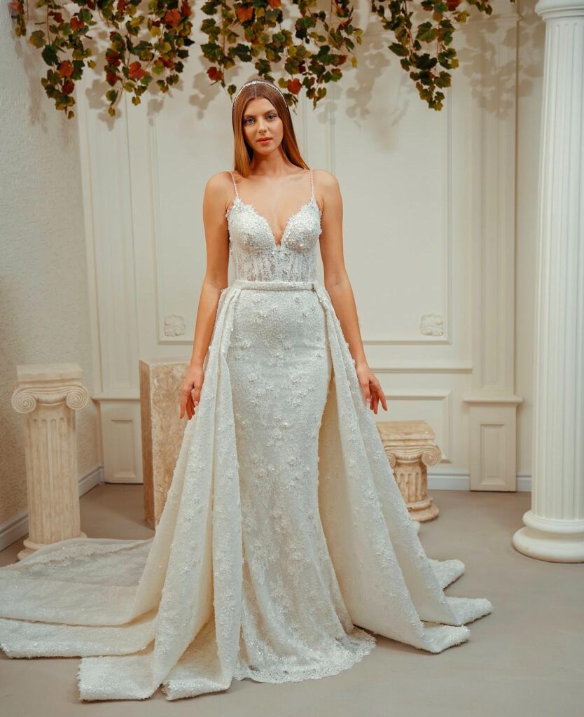 With our exclusive and extensive lace collection, we provide a variety of exquisite textures and patterns, ensuring that each bride and every woman looking for a stunning evening gown finds a style that resonates with her personality. Our commitment to exceptional quality and craftsmanship guarantees that you will not only look breathtaking but also feel truly special on your big day or any memorable occasion.