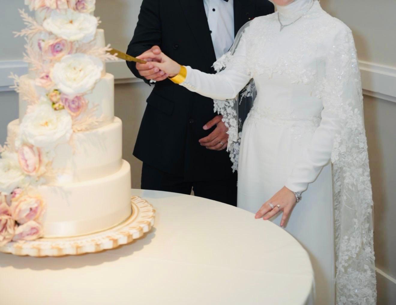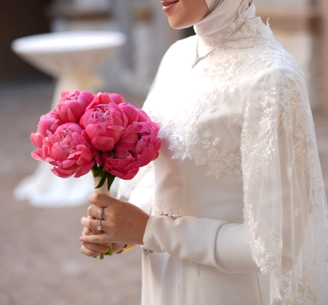 Elegant Long Sleeve Modest Bridal Gown with Lace Train – Custom Made Wedding Dress