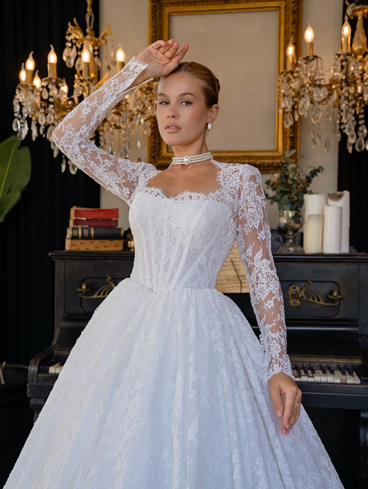 A masterpiece of romance and sophistication, this gown enchants with its full lace design and royal silhouette.